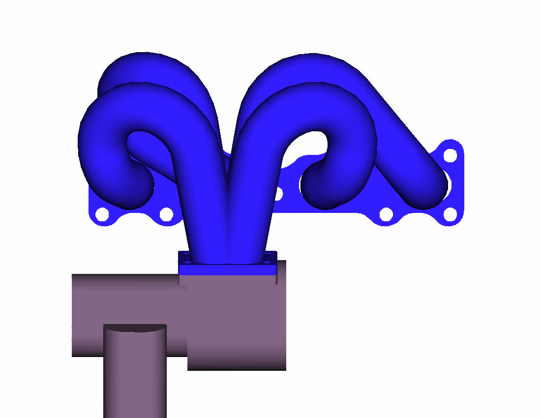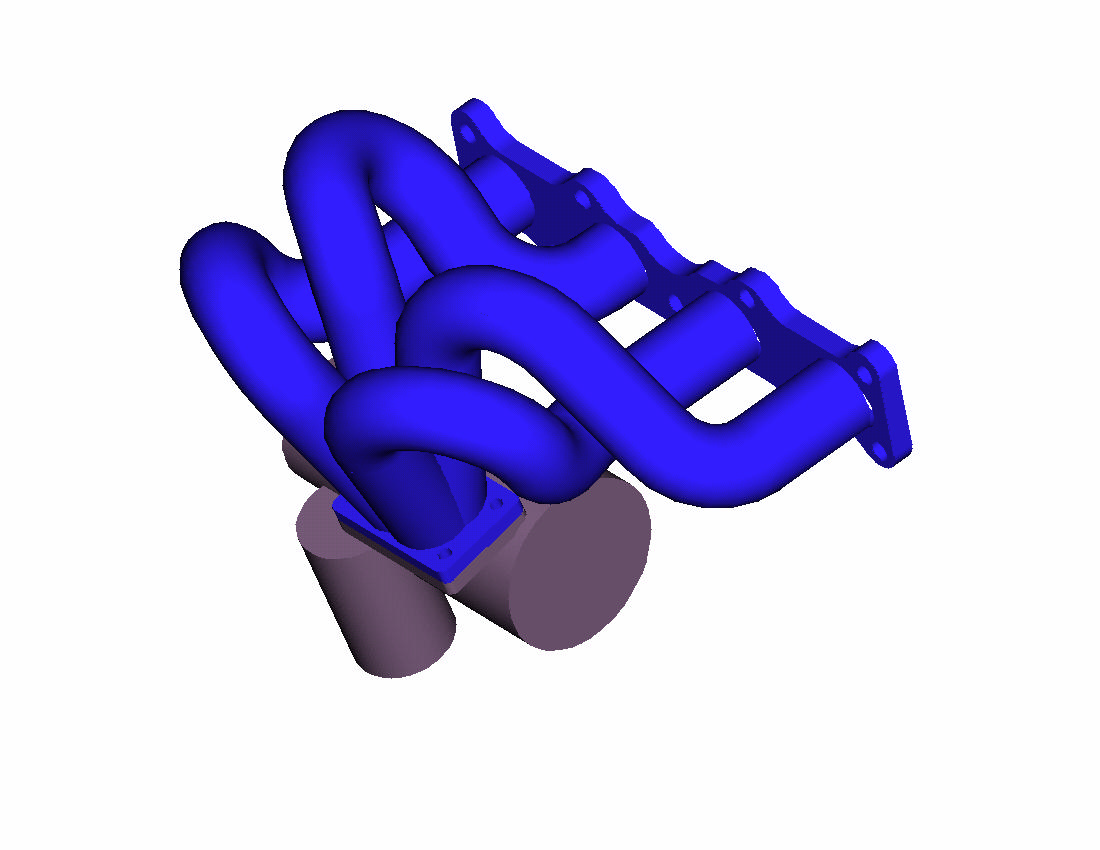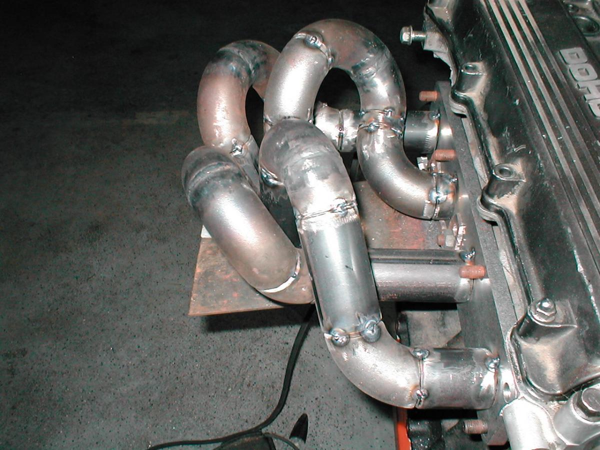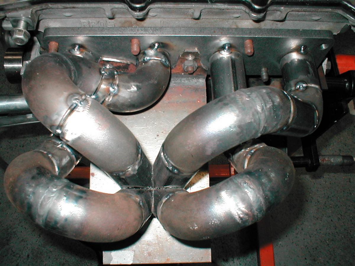 Another thing I see on a lot of other custom turbo manifolds is I think the runner diameter is too big. If the cross sectional area of the runner is much bigger than the exaust port cross sectional area at the flange between the head and the manifold then you are just loosing energy by slowing down the exhust flow where it has to speed up again to fit through the turbo. There is more loss in doing that than there is running down smaller diameter pipes to the turbo. Velocity is your friend, energy is a fuction of the velocity squared. you want to maintain all the peak velocity you can from the exhaus pulses till they hit the turbo.
