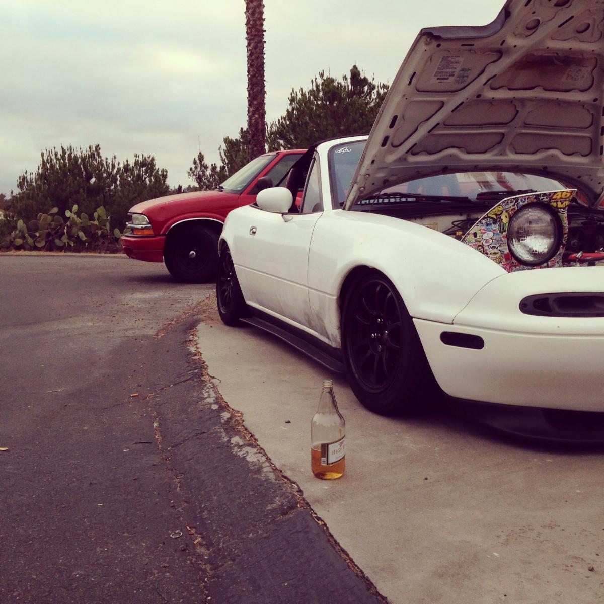 Here's a little background on what I've done so far: torsen t2 diff, race bushings, koni sport shocks, GC coilovers (550#f,350#r), FCM sport bumpstops, isc tophats (2"r,1.5"f), stainless steel brake lines, 94 spec brakes in front, 37mm koyo radiator and hoses, custom cat back borla dual exhaust, rb intake, 15x7 trm c1m et30 in front on Dunlop direzza dz101 195-50-15, 15x8.25 xxr 527 et0 in back on dz101's 205-50-15 with aukonexion fender flares. Interior is track ready with autopower roll bar, sparco seats, 5pt harnesses, and QR steering wheel.