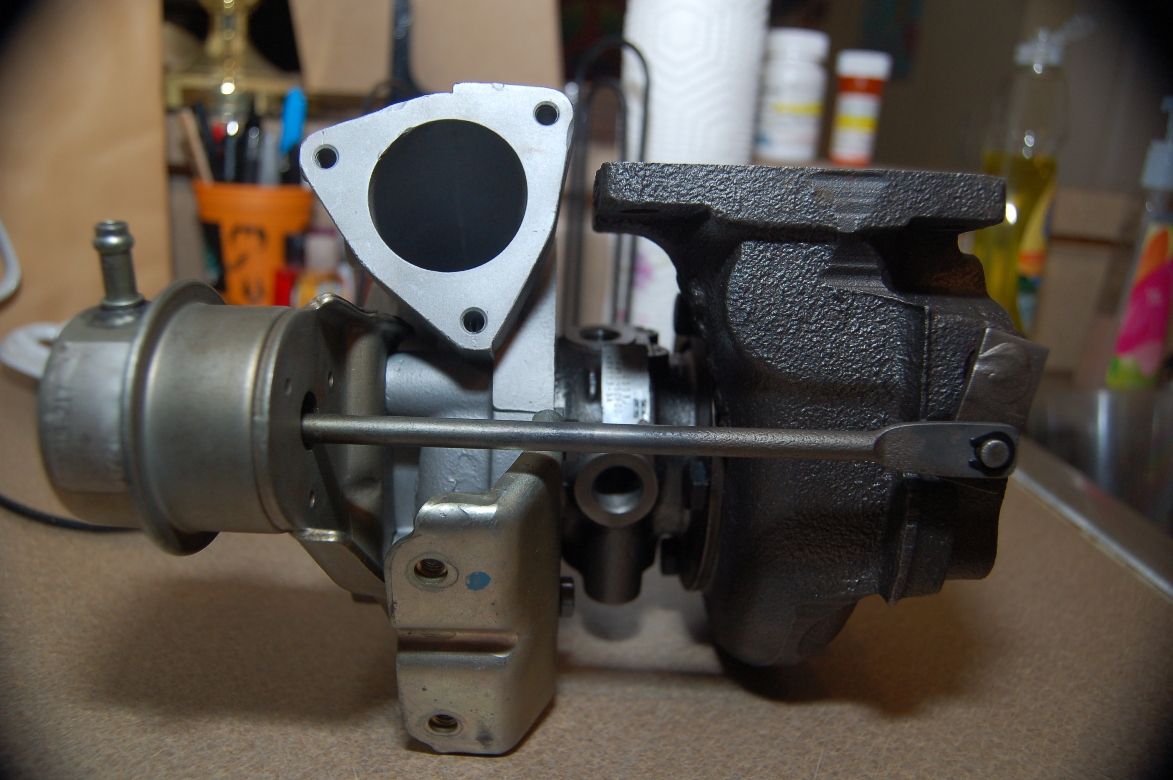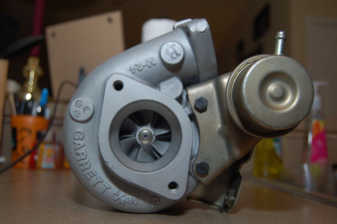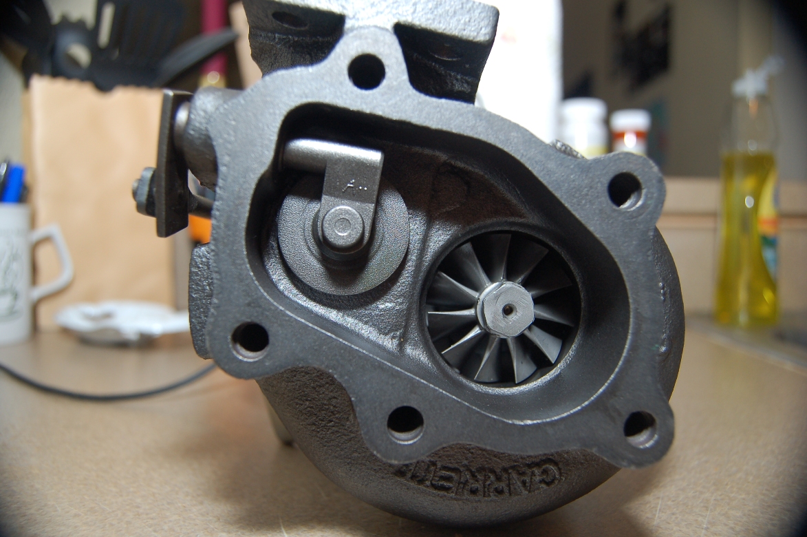 )Owner says its a recently "rebuilt (by Garrett)" turbo, T25. Sent me good pics too...anyone more keen on details than I?