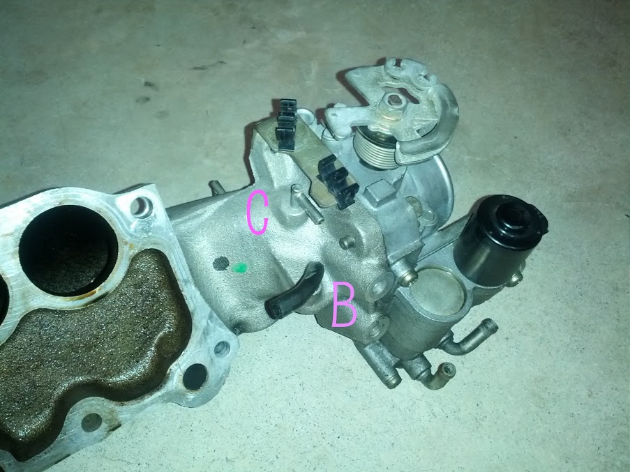 basically, there's a port on the radiator side of the IM on runner #1, that connects to a check valve, then back to the middle of the IM to the under the top half, then another port next to that goes to the solenoid then to the actuator.