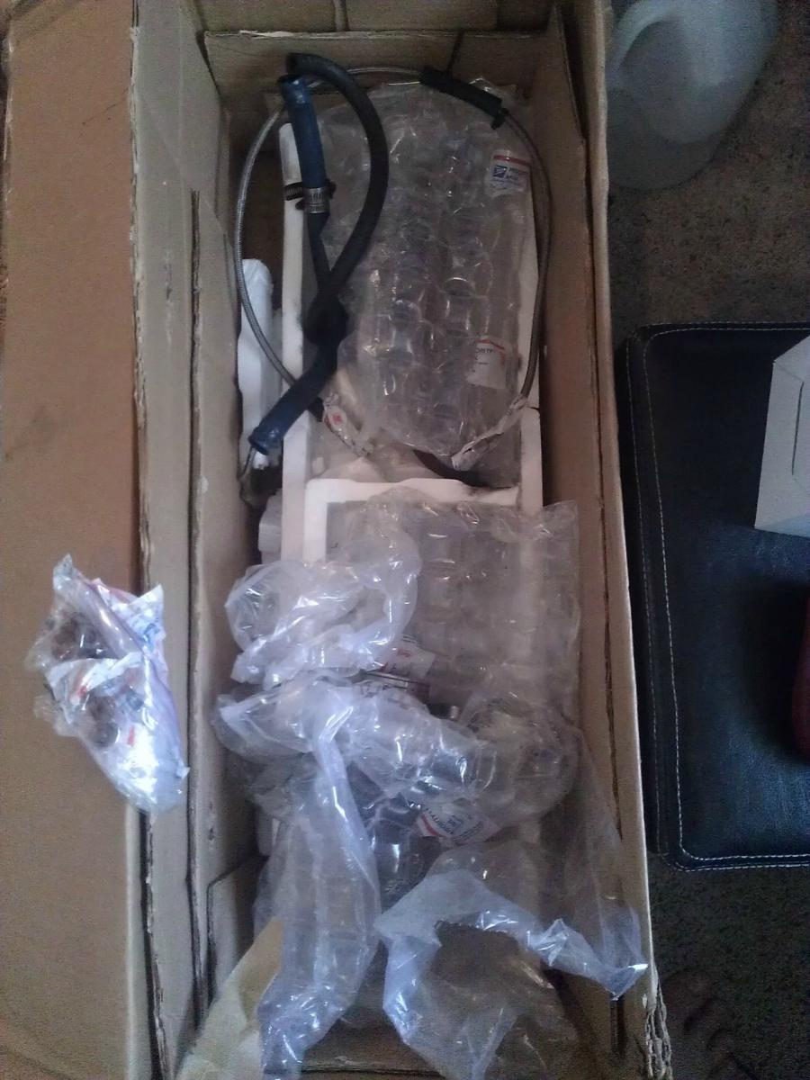 That packing job was epic. Do you happen to have a shot of the styrafoam support system I engineered for the manifold and turbo?