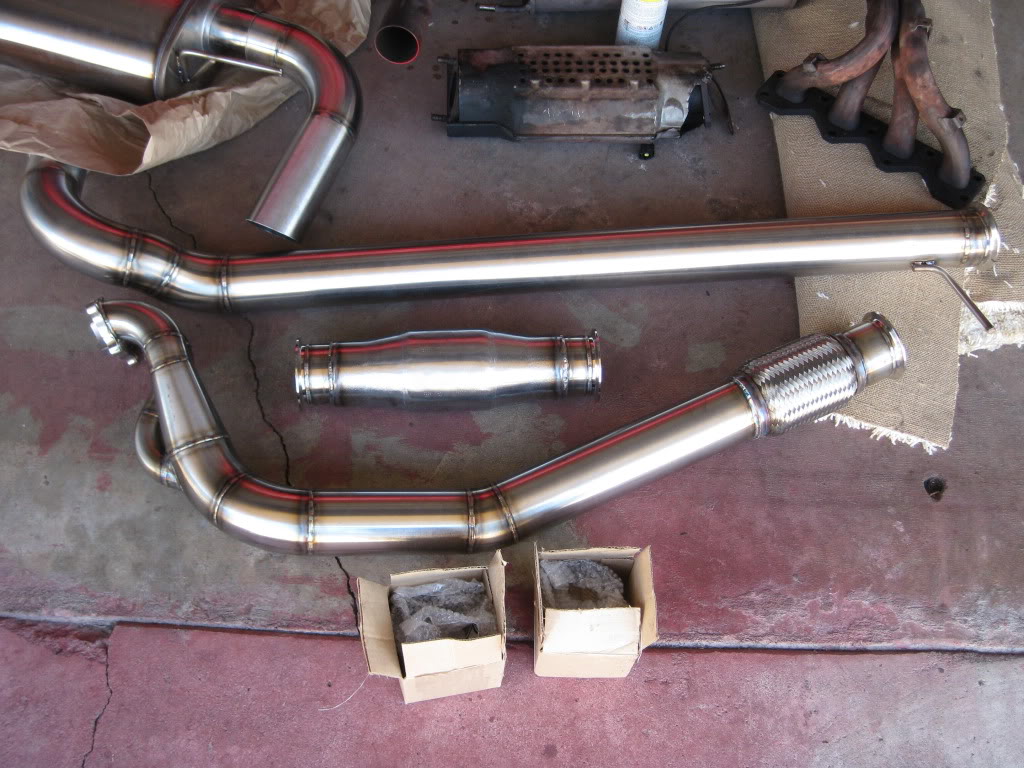 I finally got around to install the downpipe and manifold. I had to remove the bracket that was holding the stock exhaust. One bolt wouldn't come loose so I cut the whole metal piece off.