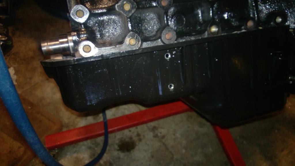 Take note that the oil pump pickup tube is just inside the oilpan in many locations down that side and when you drill through the pan you can wreck your day by puncturing the pickup tube.