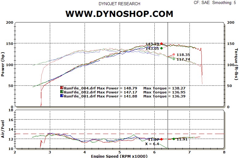 The AFX wide band unit and the Equus vac/boost Gauge correlated almost exactly with the values displayed on both the dynodynamics and Dynojet units. I was happily surprised by how well these inexpensive units performed.