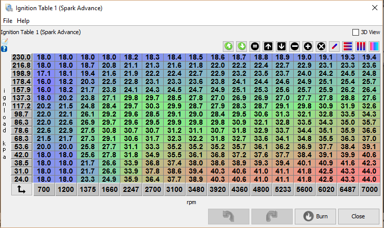 What does the ignition map look like in the 3500 to 3500 RPM?