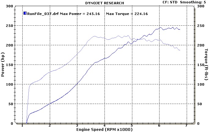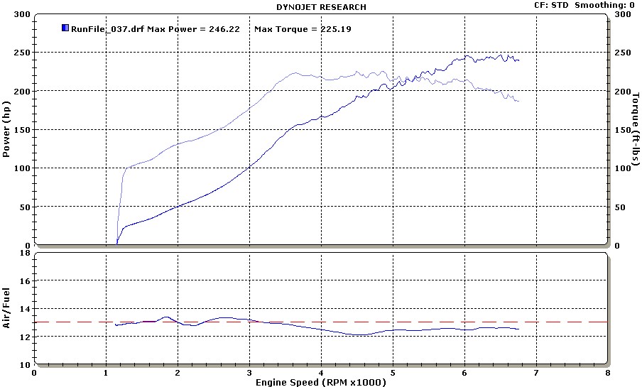 I have the AEM controling the boost. I had problems with the boost control on the dyno that I've now worked out. Now that it's got a steady 15psi of boost, I'd guess I'm making about 250whp.