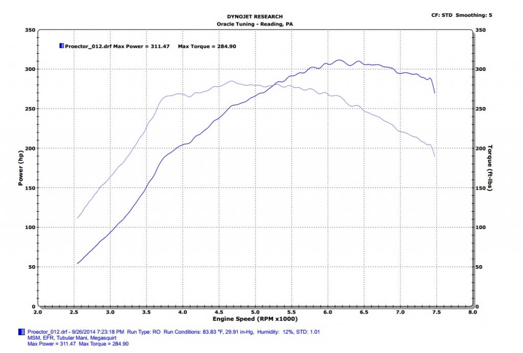 Jason, fuel and timing were optimized at 190, 205 and 220kPa. At 190kPa the engine made 275hp, at 205kPa it made 300. Encouraged by the power gain from 190 to 205, I suggested to Mazdaspeeder we go to 220kPa. At this level the engine made 311hp.