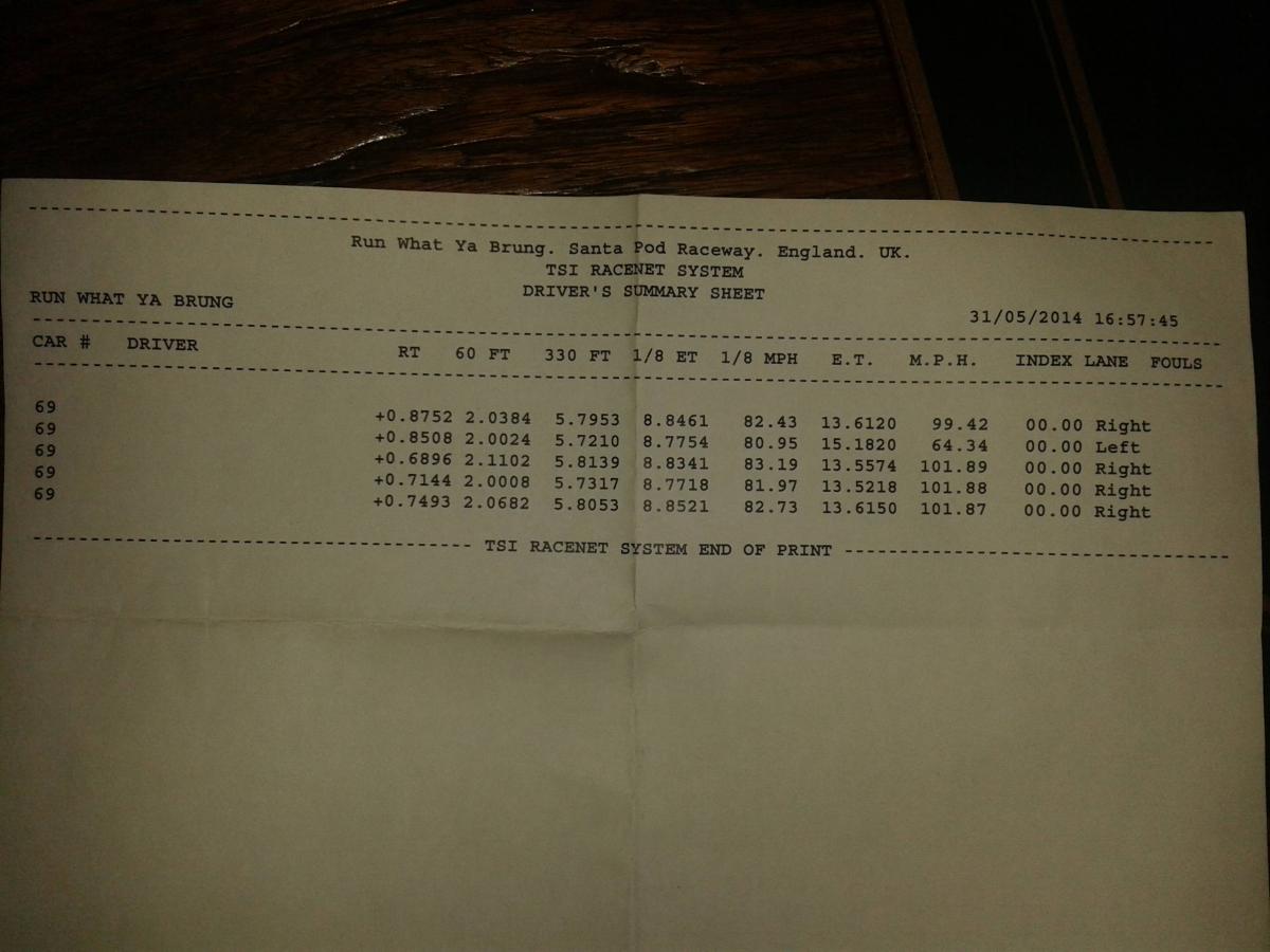 I'm now split between selling the car and moving on, and sticking with it and possibly paying a visit to Wizards of NOS. Clearly, after stating from the start of my build that I wasn't doing it just to try and go fast in a straight line, I seem to have found myself in the confusing position of now wondering how to eek a few more tenths out of it! Damn this drag racing bug.