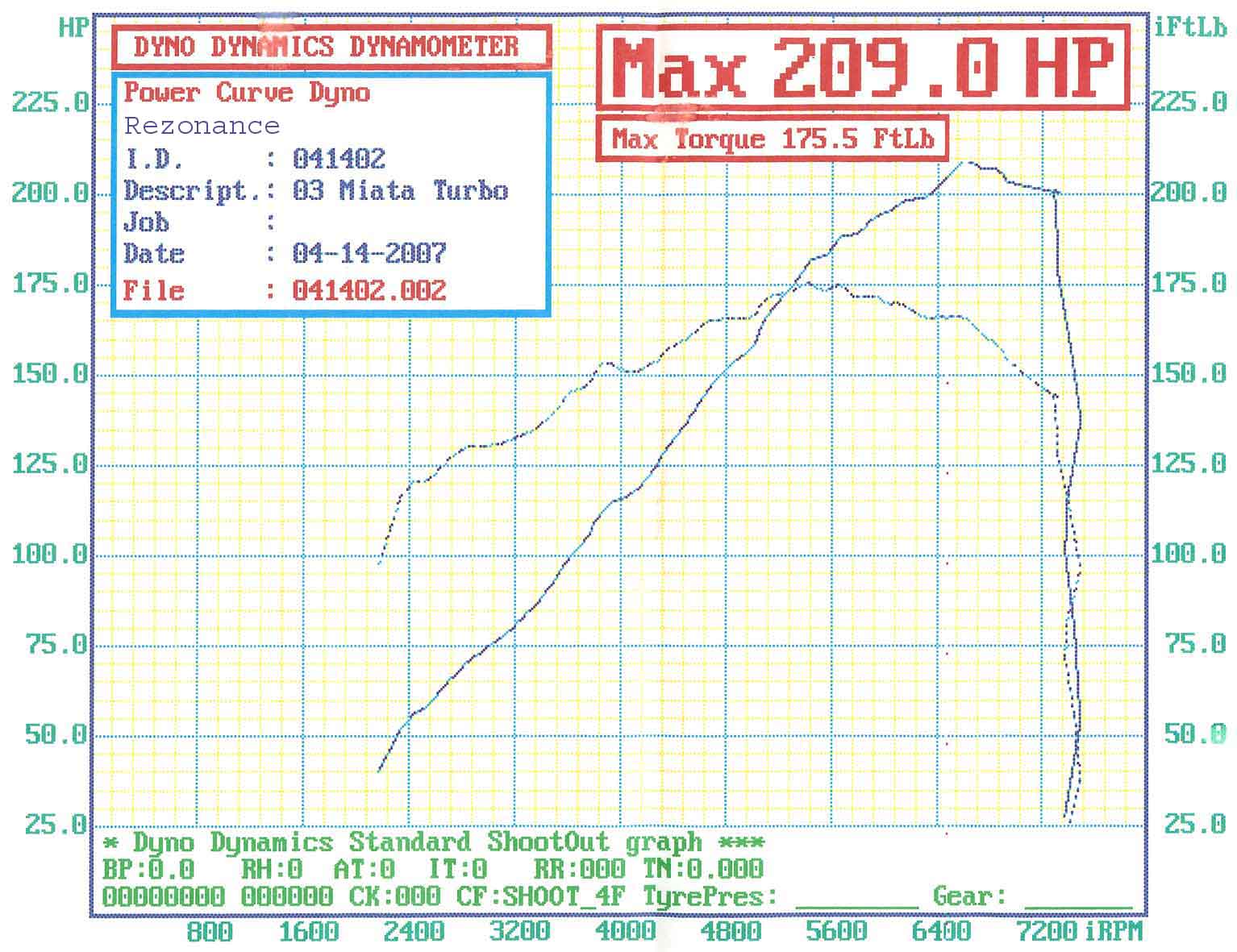 Hey there.. it's good to see a real dyno result (Dyno Dynamics) with the NB! I got mine dyno'd two weeks ago. I've got the FMII Hydra kit with turbo midpipe, turbo exhaust (single), and free-flowing cat. My turbo is the GT2560R.