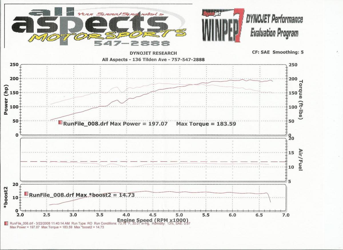 Attached is my last run... actually hit 202whp on the previous run, but this one had the final "tune" on it. Bumpy AFR in the midrange was a product of a poorly tuned Accel Enrichment table... current datalogs show board-straight AFR's through there.