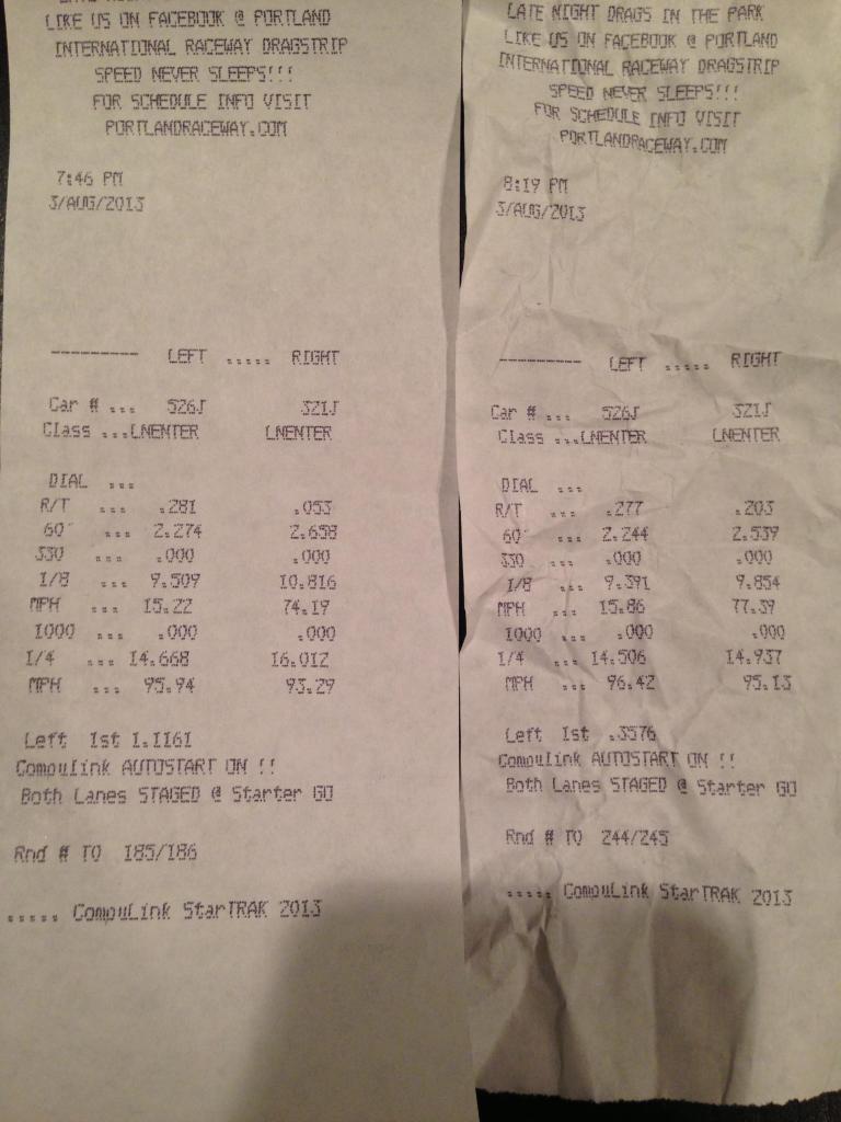 I was over joyed, however I seemed to have some slow times at the track (I'm the left lane):