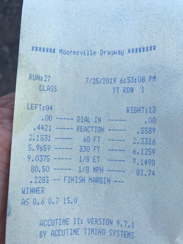I took some weight out of the car recently by getting a ccp hardtop and eliminating the soft top and all associated hardware. I removed all the ac related stuff from under dash, air bags, the no longer used clutch pedal, clutch master cylinder and the spare tire and jack. There may have been a few other things Im forgetting now, but that was then bulk of the weight removal. Car picked up about 1 mph trap speed. Hard to say on the et as track was not that great today it seemed. My best 1/8th mile today was 6.99 seconds at 106mph. There's more in it as traction was an issue today. In fact you can see in the timeslips I posted on one pass how bad it was. My previous best was 6.91 @ 105. If I decide to keep this car then next year I may do something about the rear end and traction issue.
