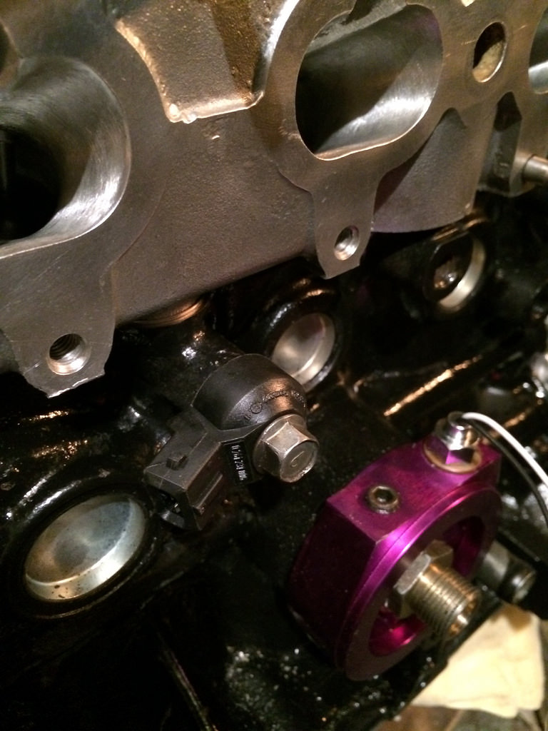 Photo of knock sensor location for reference. M8 Heli coil in a m10 hole. It's tight enough to hold the knock sensor.