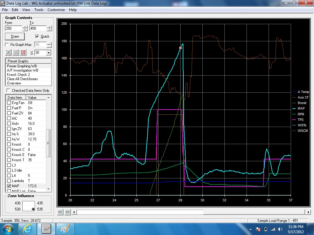 to try and figure out if i had a mechanical leak i disconnected the hose at the actuator and with a very careful right foot did a pull to my boost tgt of 180 ( not to bad huh?