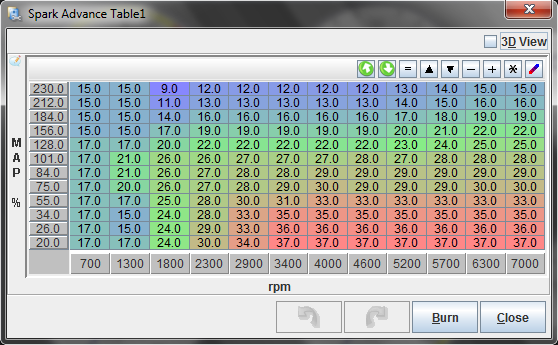Hey Jason do you happen to still have your whole map and will you share it? I just installed the FMII kit with the 2560 on my stock internals 99. I have tried running a map similar to that DIY 1.6 map and also a map similar to the 99 supercharged map with 10-11 psi and something seems off. It just doesn't seem very fast. I am set up with stock exhaust currently though. Maybe that drains lots of power? I didnt figure it would make that much of a difference.