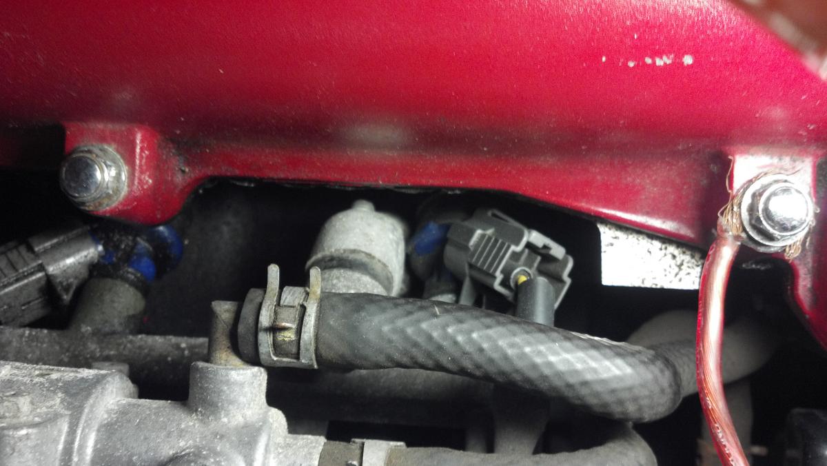 Stock Fuel pressure regulator is still on the fuel rail and the vacuum hose is still connected to it.