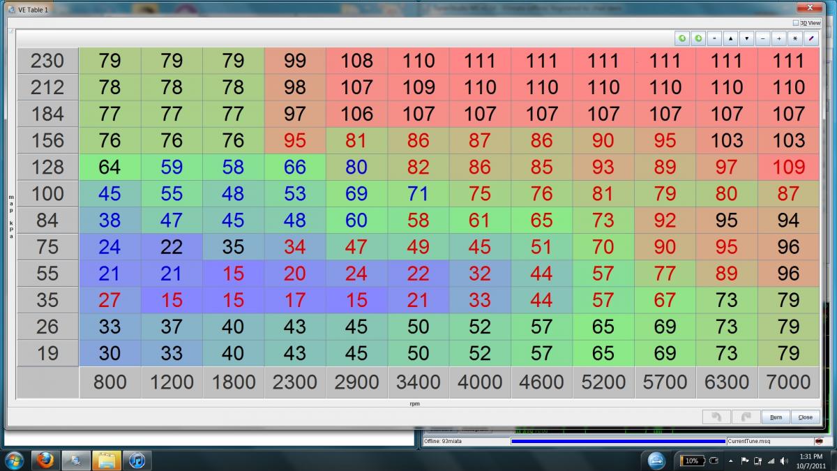 i changed the values in the four cells around idle, and clicked burn. i lowered as much as 10 in all of them and it didnt change much. i just autotuned at idle tho and it changed them to around 19-25 so i guess i just hadnt changed them enough. i wasnt sure what a reasonable step size was to test.