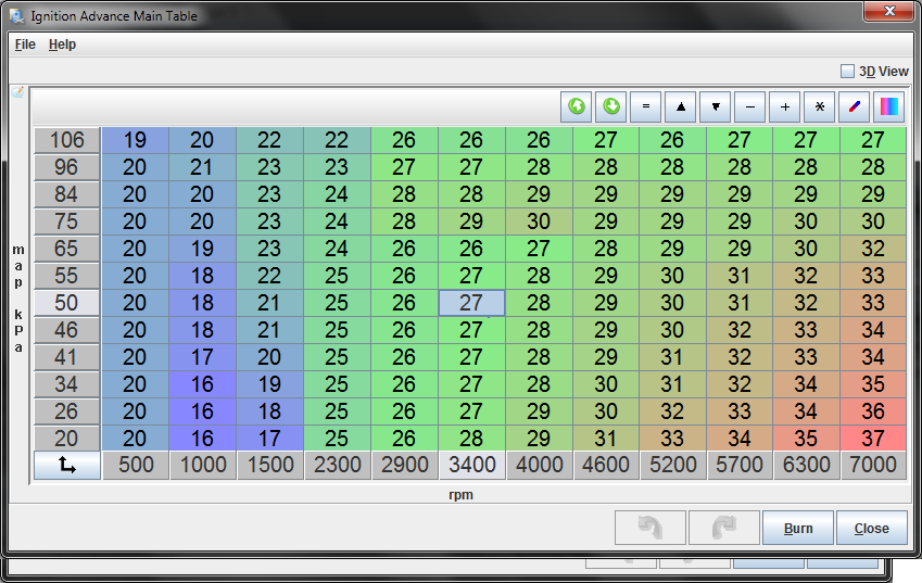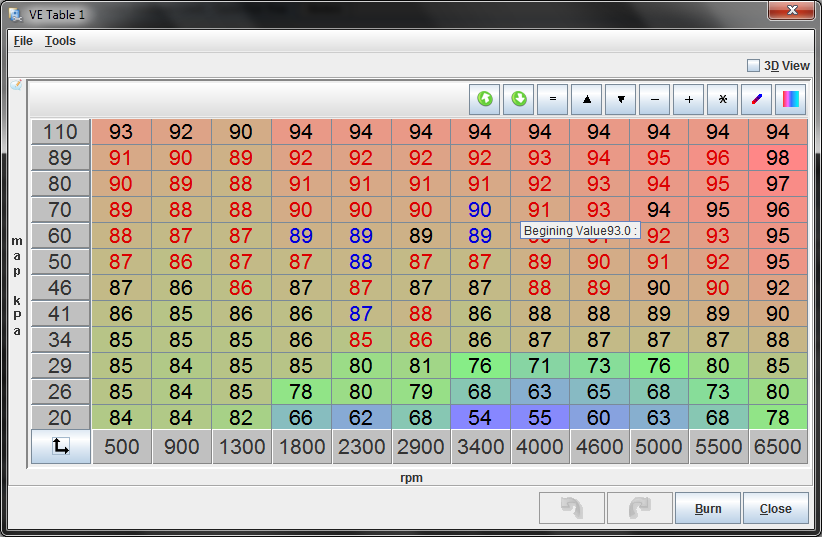the ve table is were it should be AFRs through cruising, braking and accel are were they should be. spark table was basically the same as were i had the previous on at.