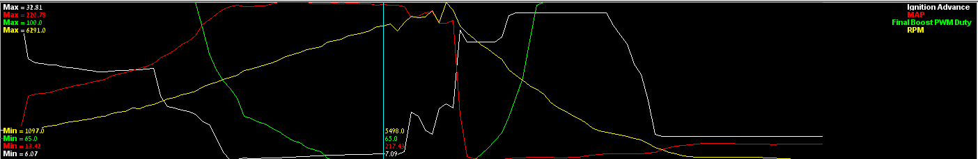 The car came to me with this map and cuts at around 5500rpm, after tuning it yesterday I got it up to about 12deg at 210kpa no knock but the cuts came back after a couple of hours...