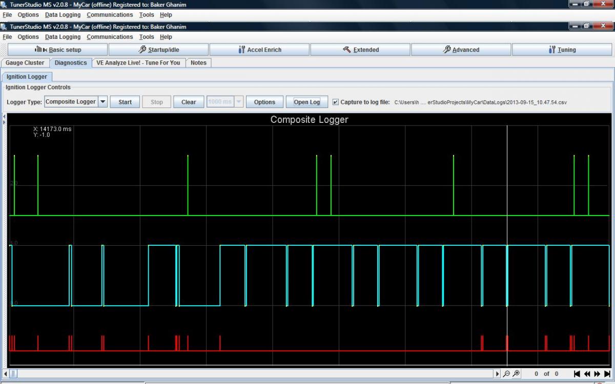 Something is a bit suspect about the composite log; the crank signal (middle trace) doesn't look right. How are the RPM inputs wired up?