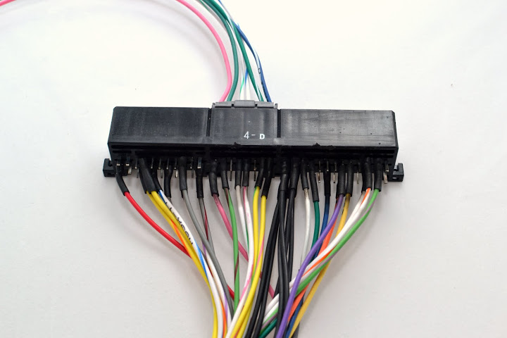 Abe- on the harness that I got, there were two different styles of ground wire. None were labeled, but certain grounds use solid black while others use black with a white stripe. That'll make segregating high-current grounds from sensor and logic grounds easy.