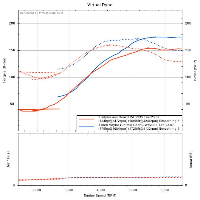 My log only goes to about 100KPA and 6500 RPM so power is around 125 HP