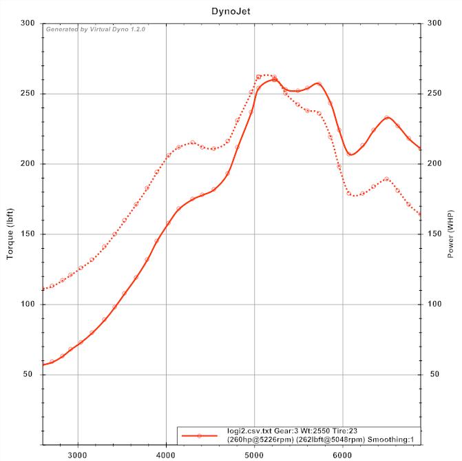- Dyno was 1.5psi more boost (later was bumped 1.5psi more + 2* timing to get 400whp)