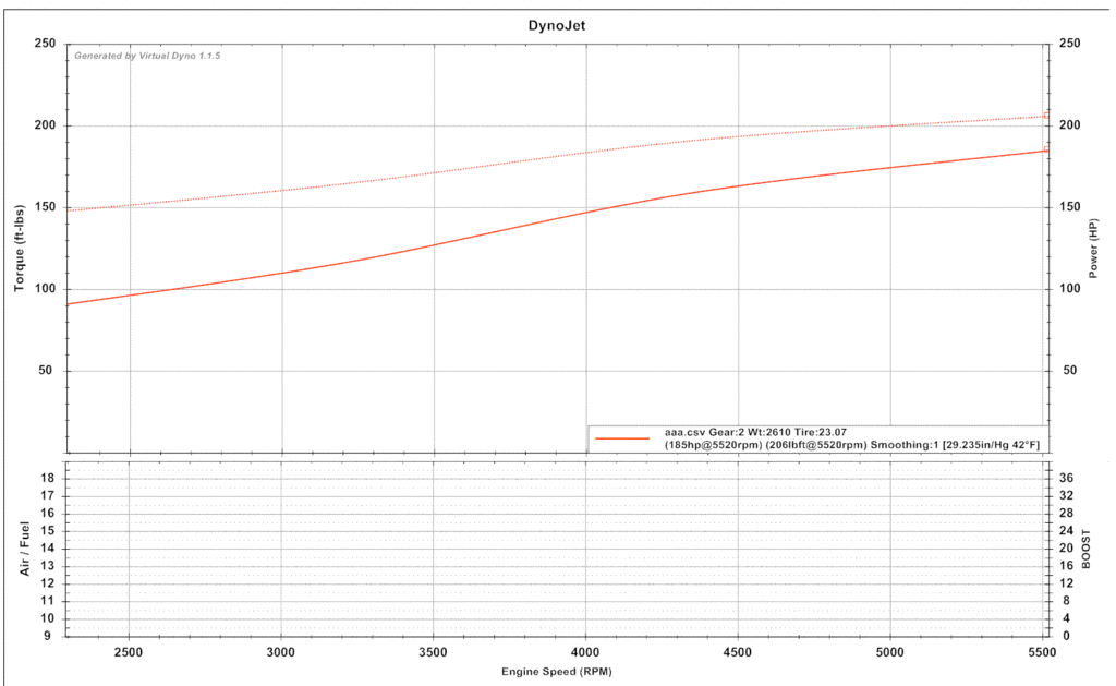 Here's the result plotted by Virtual Dyno: