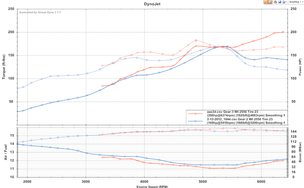 On a side note, i added few degrees. Heres the plots. blue is 2nd gear, red is 3rd gear... was wet out and couldnt hook on 2nd gear. big difference.