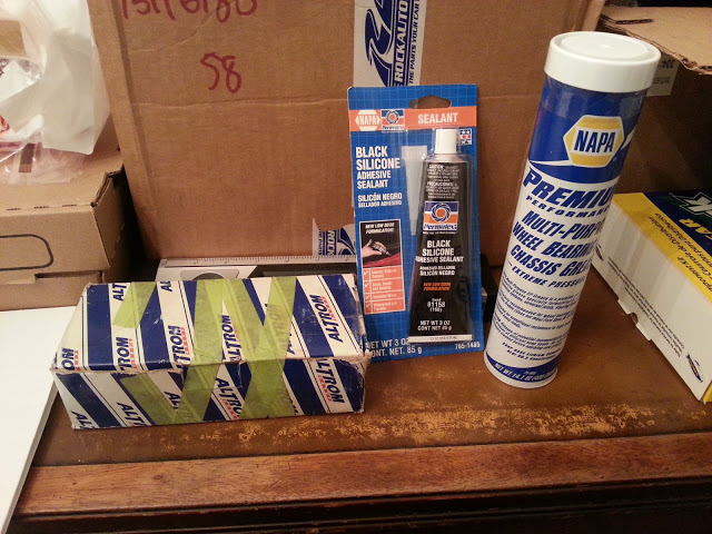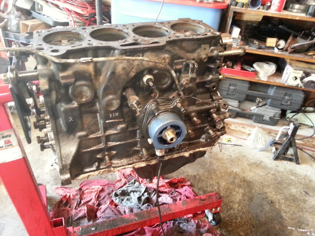 Cleaning. 2 cans of degreaser, half a bottle of purple power, and 5 cans of brake cleaner later. I also noticed that someone went all Michael J. Fox on the tube of grey RTV on at some point.
