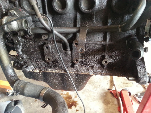 However, the oil pans are notorious for leaking on these, and the hilarious over-use of RTV indicates to me that someone was getting frustrated with an oil pan leak they hadn't been able to fix in the past.