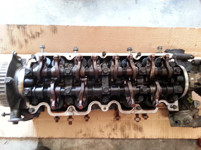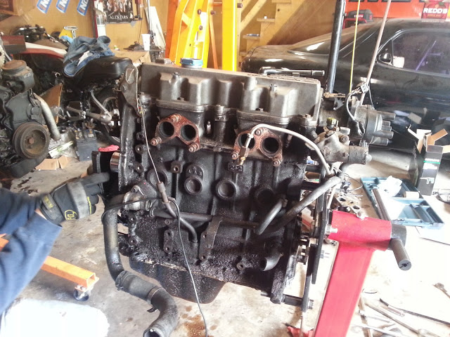 This all said, the head i pulled off this thing is pretty fucked. I'll keep it around to rebuild/port/**** with on the side, but for now, i've got another fresh head laying around that will go on this block. In my experiences, a fresh head on a 200k mile motor typically represents a HUGE power gain over the previous old head.