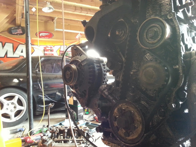 I'm guessing the cam or crank seal was leaking. Or... both. Yep. I just cut off the timing belt because it was soaked in oil. **** re-using that thing even though it only had 10k miles on it.