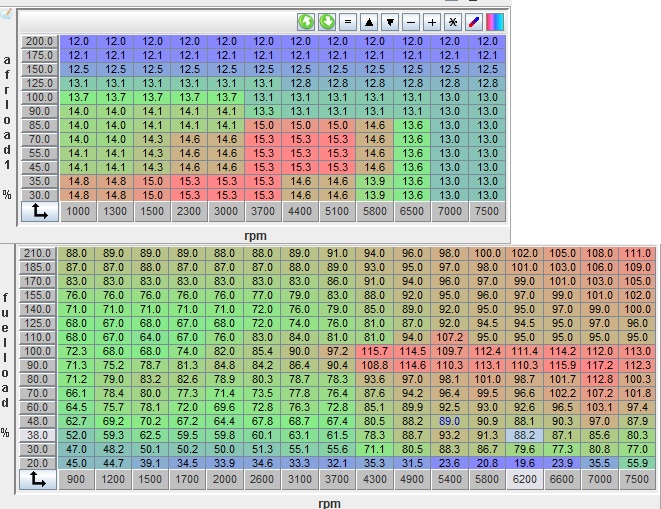 Since you are normally aspirated, you should rescale your tables to top out at 105 or 110 kPa. That will double your resolution. As currently configured, half your table is wasted.