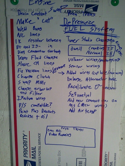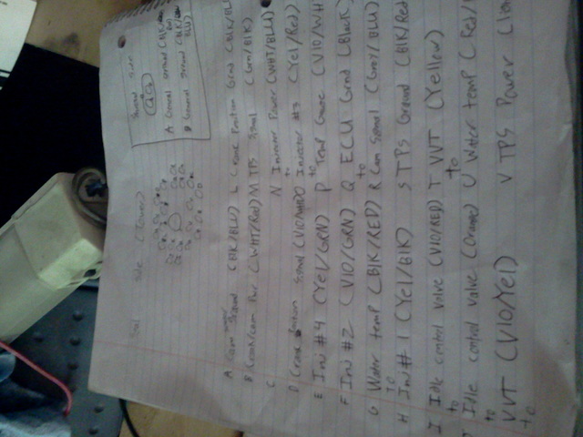 Well all is well. Drove for the first time today. Engine is quite noisy.... lots of ticking and valvetrain type noise. Nothing alarming....just odd. Perhaps its the 5w30 mobil 1 Never used synthetic before. Anyways car drives great got the idle sorted out and I did a little auto tuning. Very pleased so far. No issues at all. No leaks or anything like that. Ended up using the factory exhaust manifold and downpipe. Welded an extension section and a flange to bolt to the factory cat. I also welded my bung for my wideband in this section. I'm including pictures of the finished product including on of my many diagrams/keys and a picture of the big ugly connector. Enjoy.