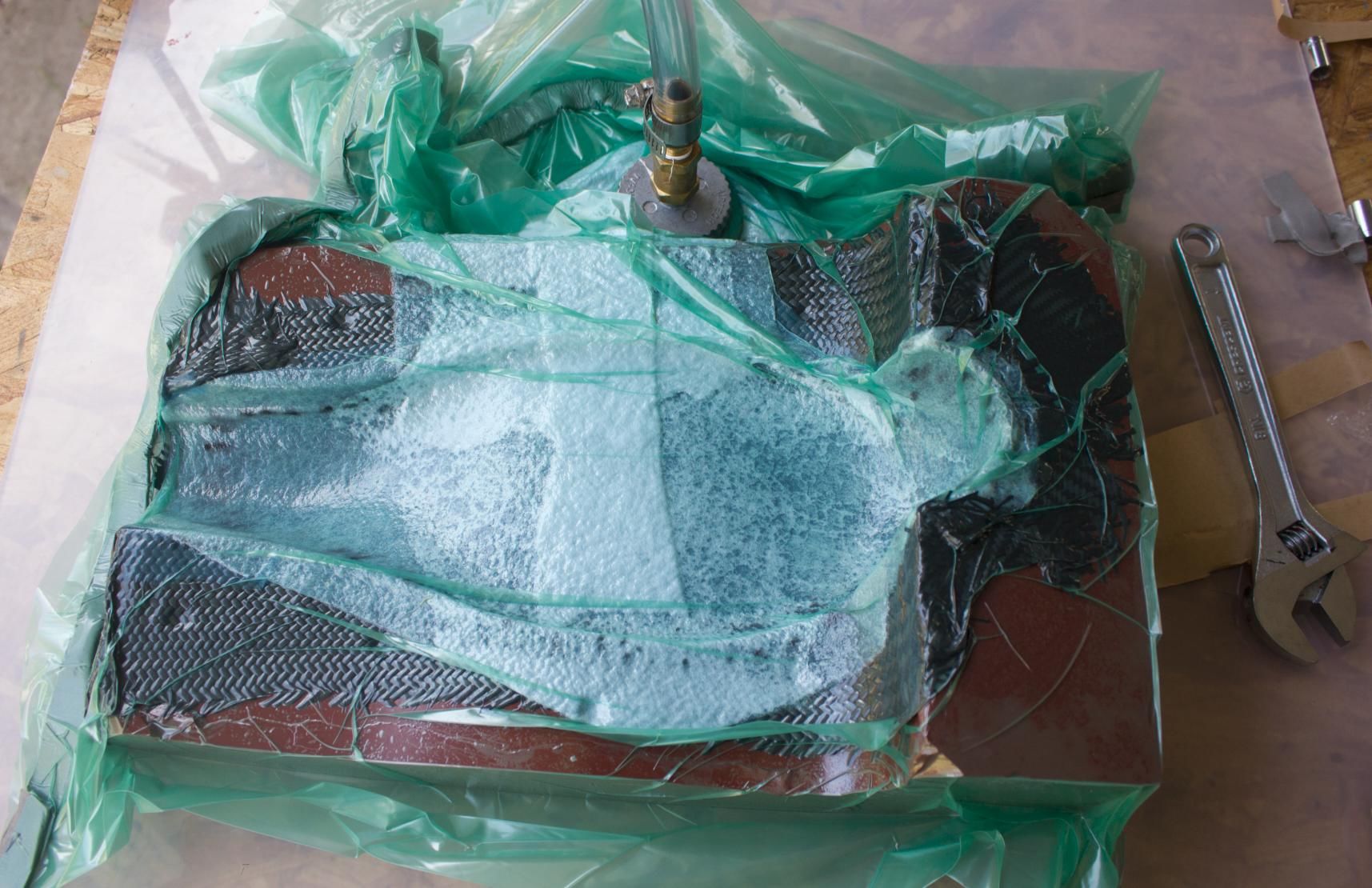 I have both sides of the mold poured and am waiting on a bag sealer to make tubular vaccum bag sections. I will probably try and make one this weekend with a taped together bag