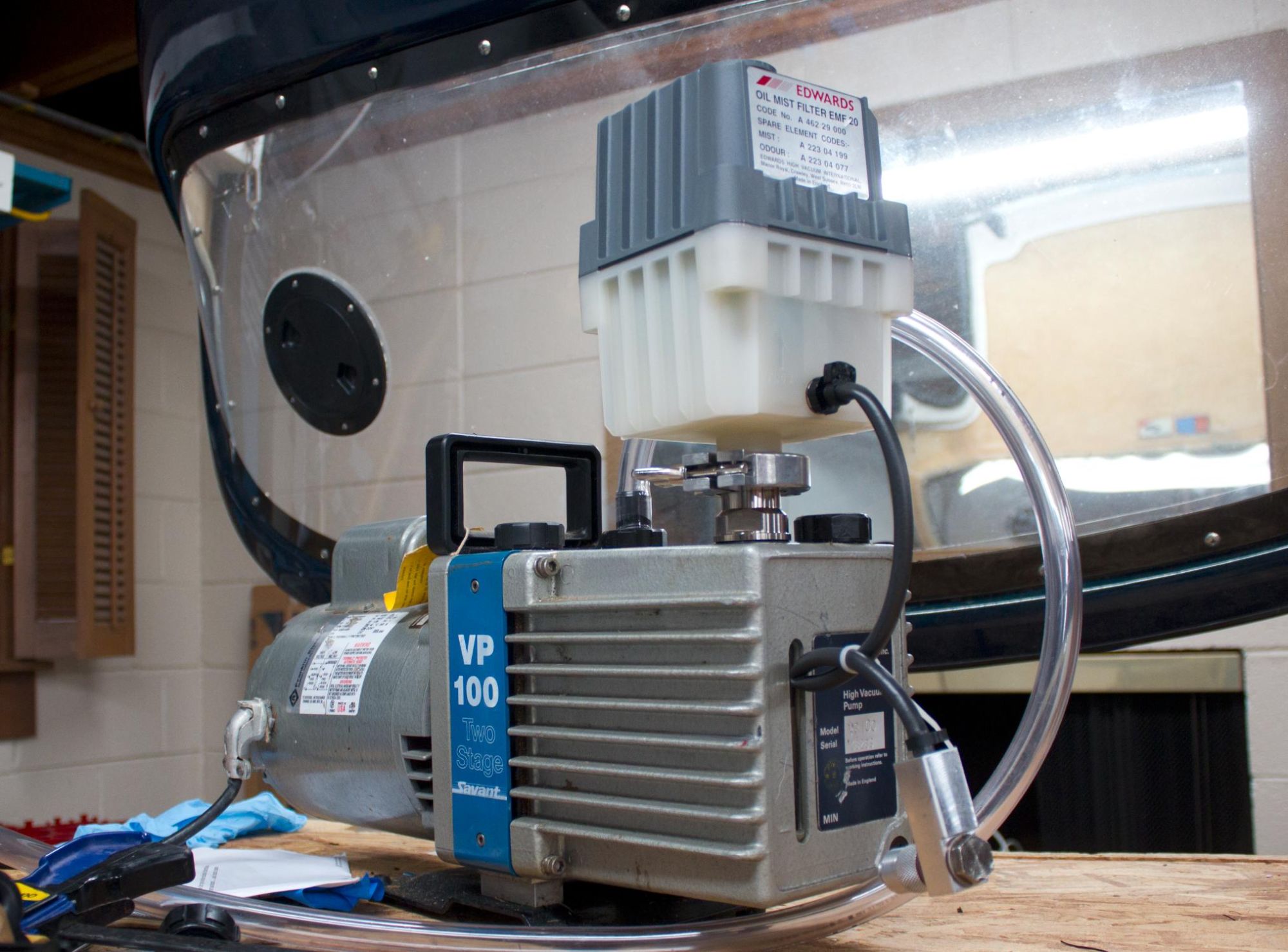 Also, I finally got my hands on all the parts for this oil mist filter. I can now run my vacuum pump indoors on continuous duty without spraying a fine mist of oil into the air.