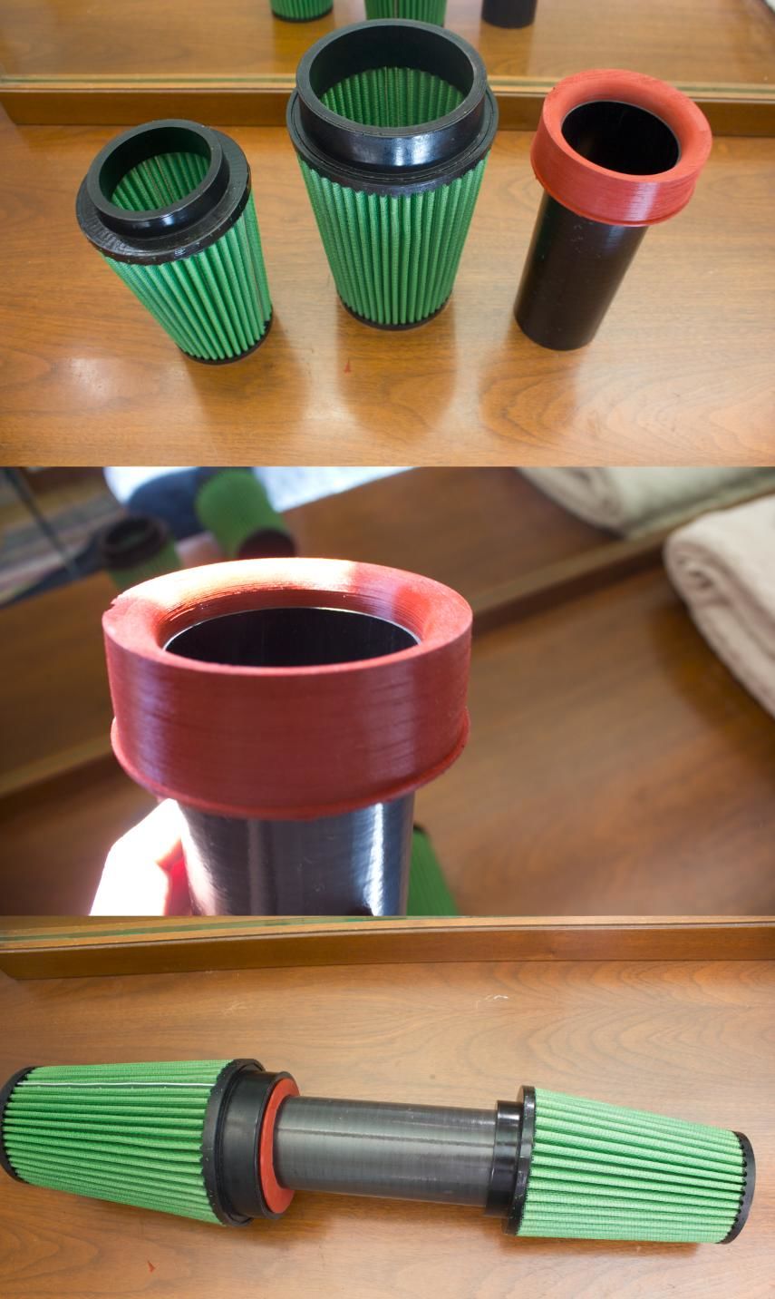 There isn't any room just after the intake filter in the pipe. The air filter flange fits almost directly against the bottom of the radiator support bar.