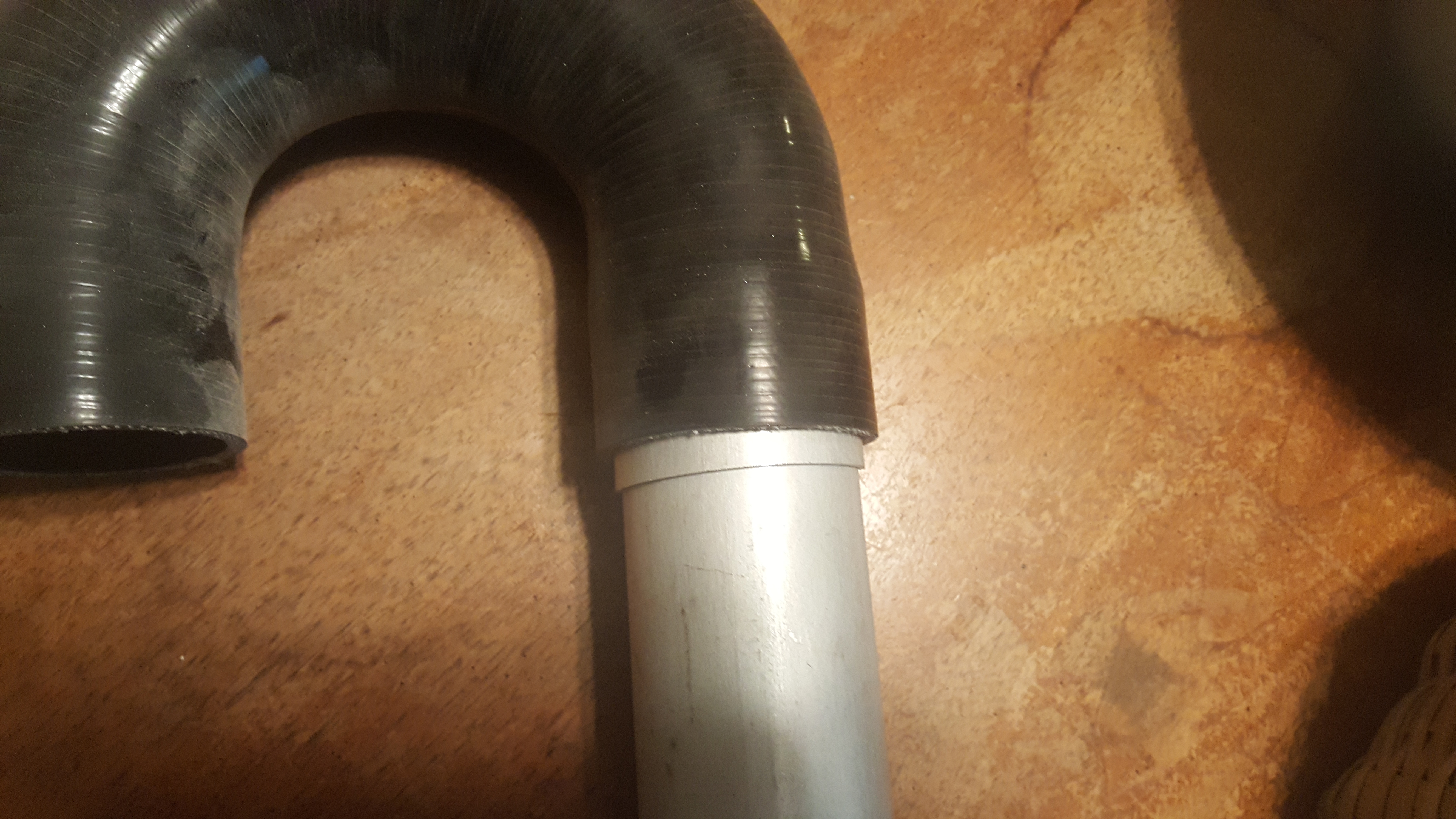 Not too difficult to get the hose over tube expanded to be 2.5" ID .065" wall aluminum at all. Hose clamps will not be required. Less weight. the body of the thing is thicker aluminum but I have .065 straight for the straight sections. The Mandel bent tube aluminum I started with is I think O condition so its soft and easy to form. the straight section of .065 is T6, much harder to bend at least til I weld it and screw up the heat treat.