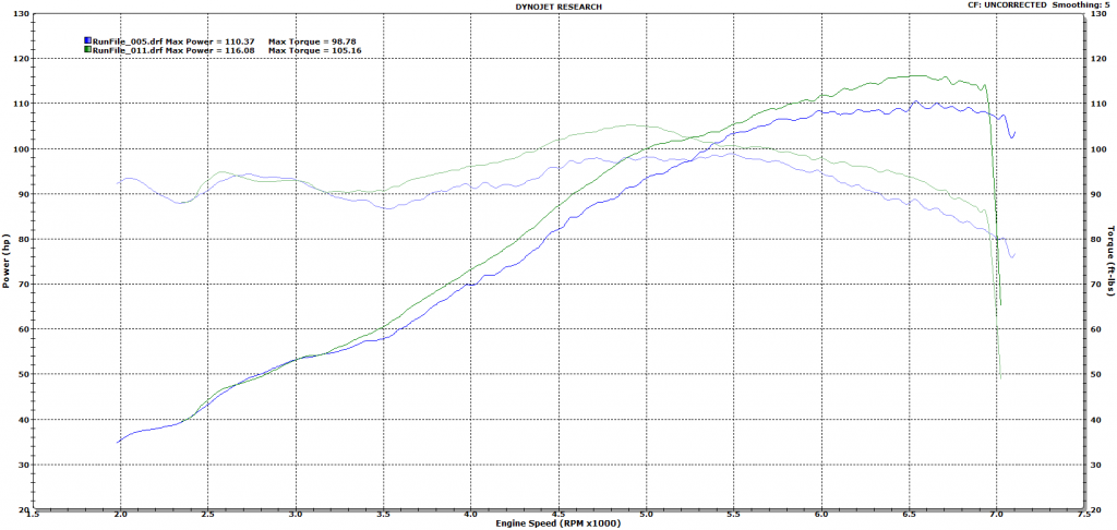 This is a dyno graph of a coldside U bend intake VS the setup I sent to curly. Mine is the green line: