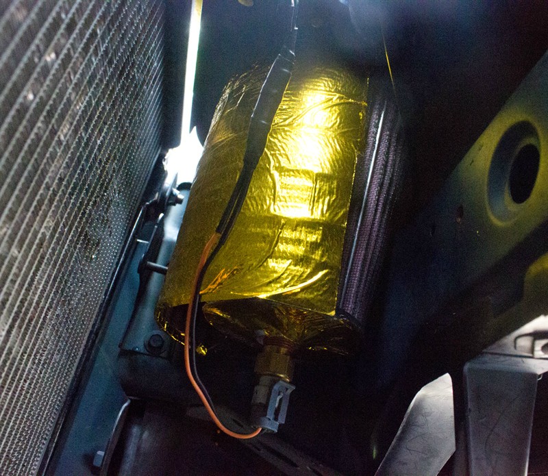 I finally got a hacked together heat shield installed. It is several carbon fiber layups bonded together with foil on the back: