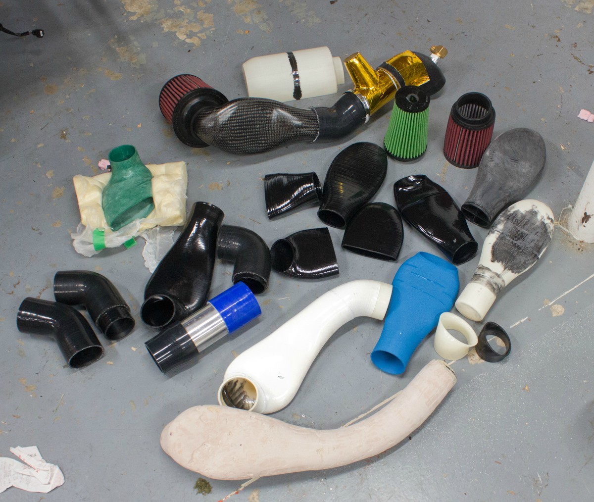 Also, I have been playing around with tubing wall thickness and elbow diameters. This stuff is all 2.5" except where it hooks up to the duct (which currently has about 3.5mm wall thickness):