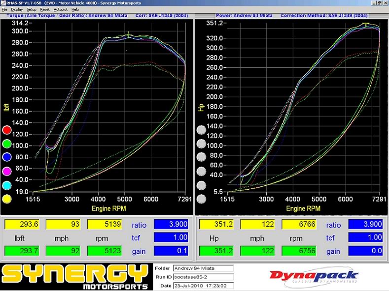 Having said that, a theoretical setup that would match Sav's spoolup but rises to a higher peak and holds it to 7000, will have a "narrower powerband" but would match and exceed Sav's torque at all RPMs, and thus would be faster.
