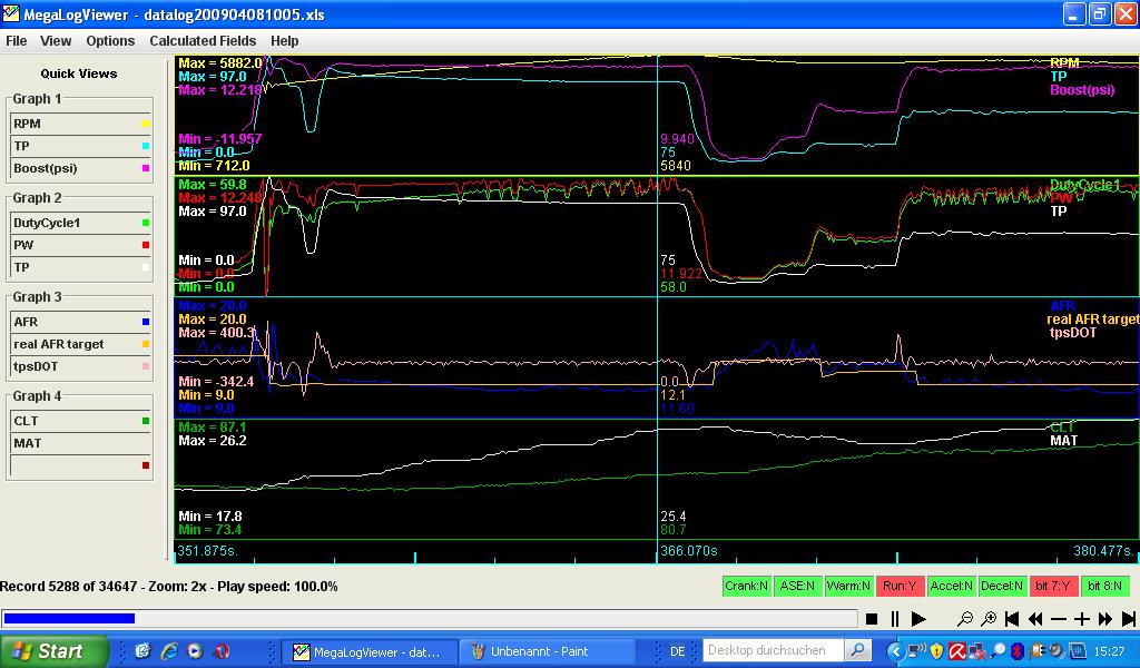 the AFRs were within reasonable values. Espacially when this happend (~6k RPM, 5th gear full boost ~10-11PSI) there were ~12.0 AFR nearly flat.
