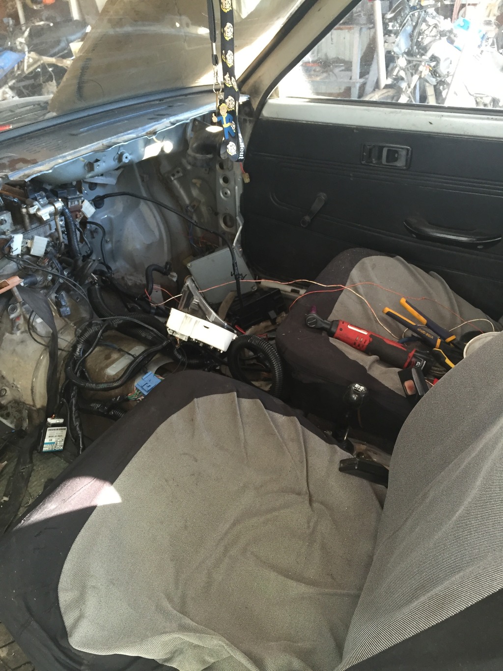 I put all the wiring on and hooked up the older 96 miata fuel pump I got and tried to fire the engine in the car. It sputtered and tried but not enough pressure. Older Miata was only rated for like 38psi(?) and I need 58psi.
