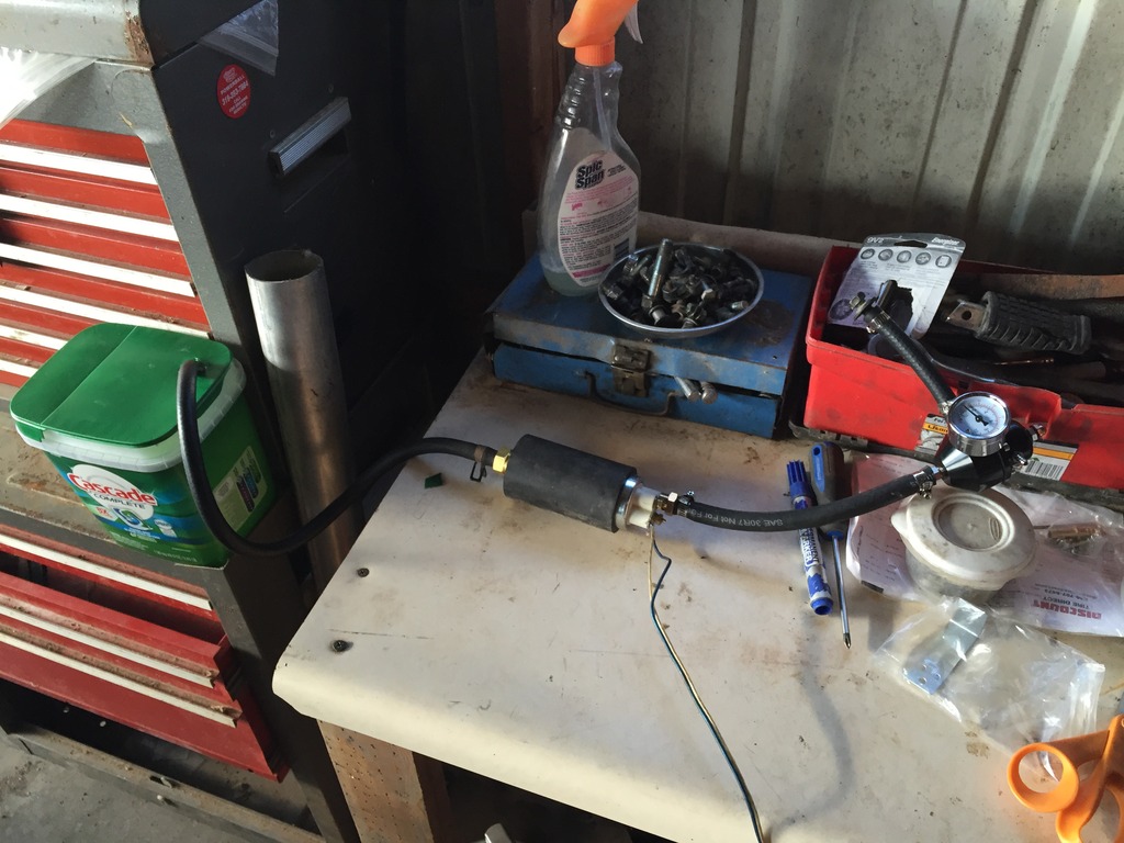 I ran a line to the engine and started it. It took a bit of cranking but eventually it started and ran for about 10 seconds around 1800rpm. So atleast everything seems good with that.