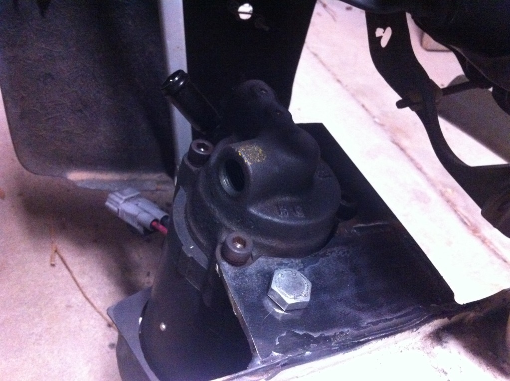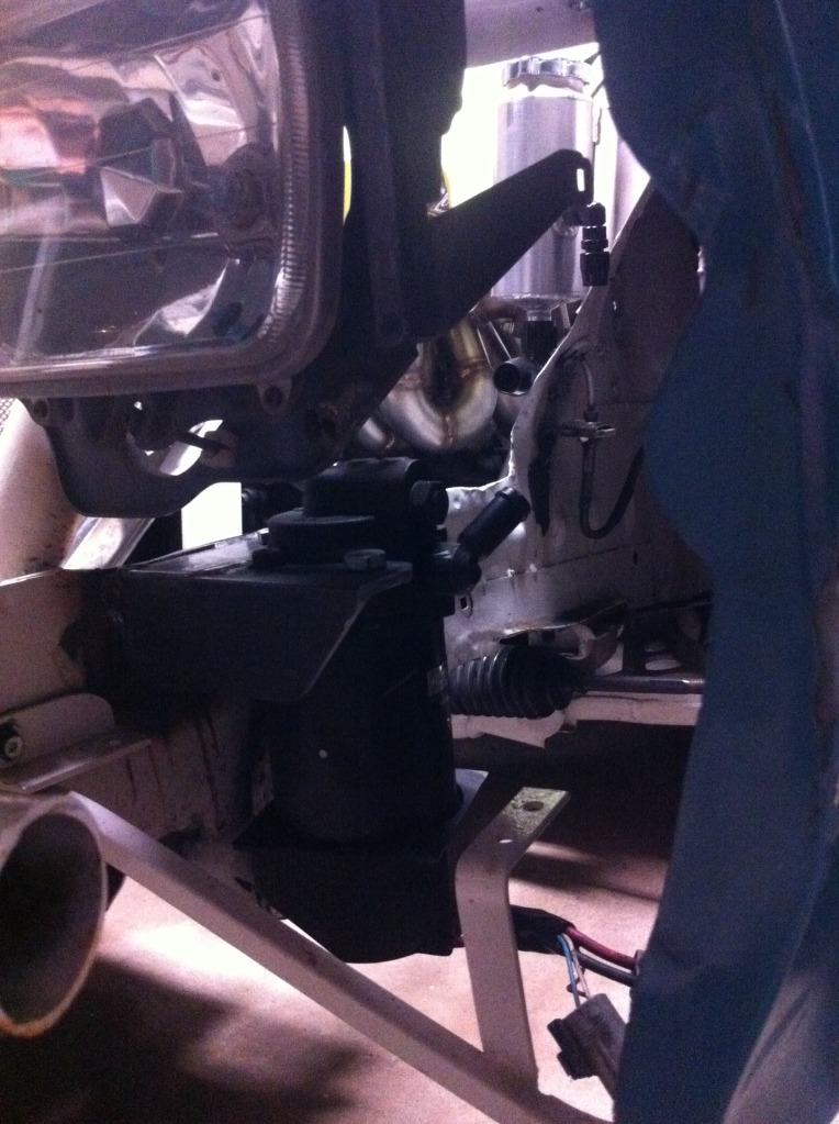 Mounted my mr2 ps pump. The bracket is really simple and super awesome. This is the best placement we could come up with on the car without putting it in the trunk. Going to run the PS cooler just in front of the pump, where the existing brackets already exist.