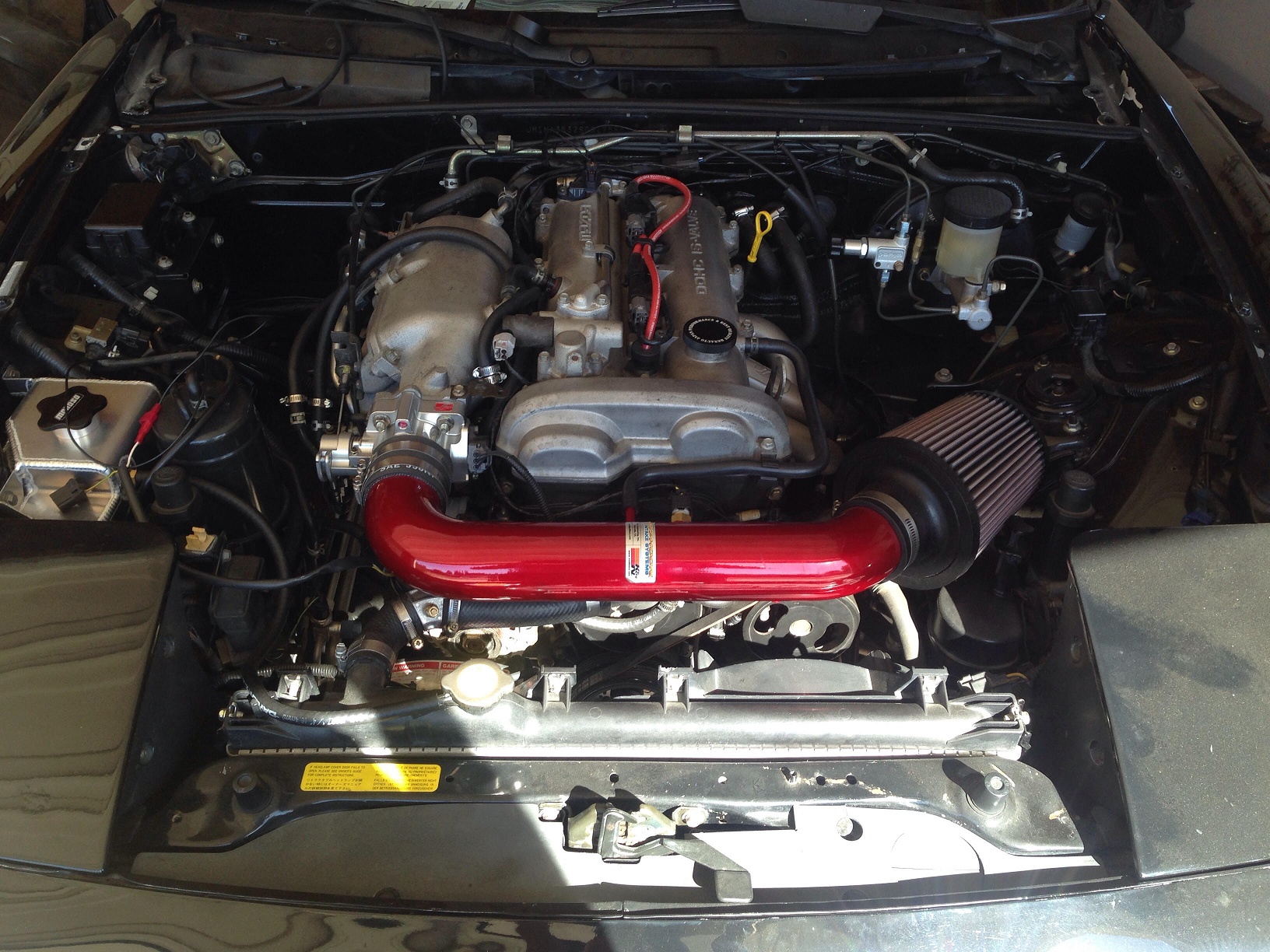 The current setup is 01 VVT long block, Squaretop intake manifold, Skunk2 throttle body, Jackson racing header, racing beat full exhaust and aftermarket cat. I am using the 94-95 MS3 Basic for my ECU. Transmission is an 04 MSM 6-speed, Toda 1.6 flywheel and 1.6 ACT clutch... currently have the Torsen I 4.1 diff...