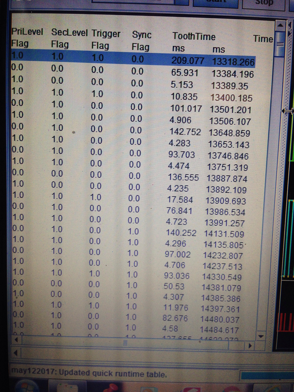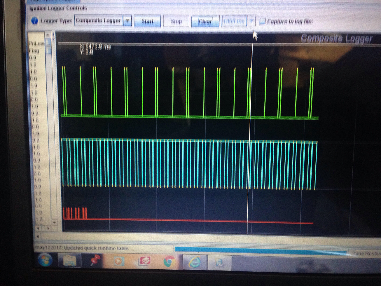 I am not sure how to provide you the best composite log so I took a picture by phone. Looks like a sync error... I did replace the cam and crank sensors with new sensors and have checked the tooth gap with a "credit card"..