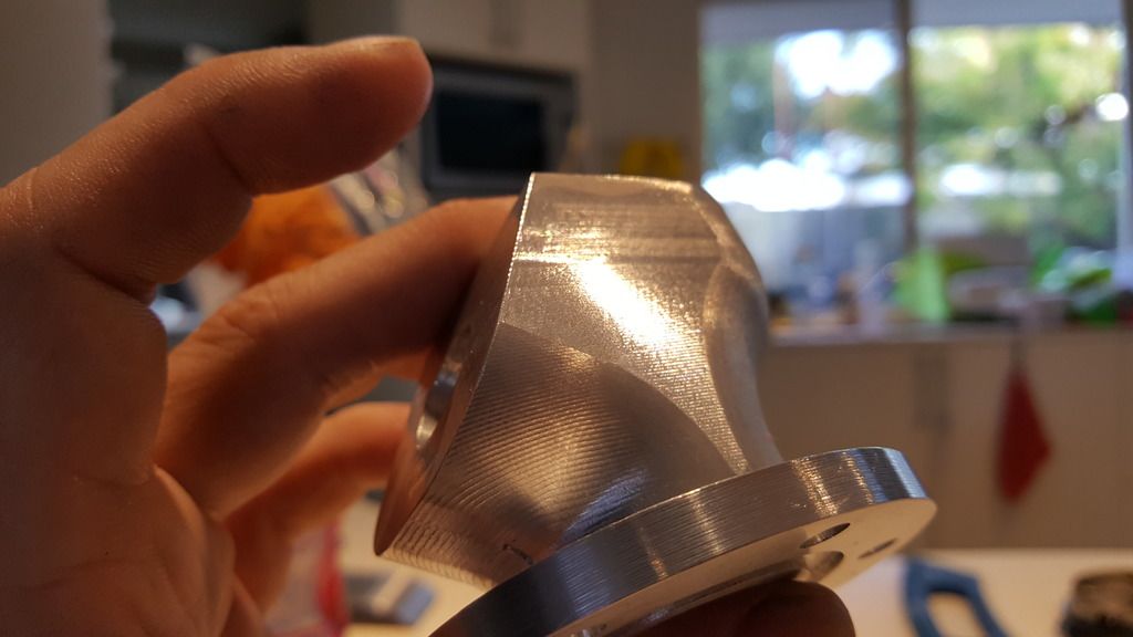 I hour on the lathe cleaning up the flange and 5 hours on the CNC mill... here is the end result:
